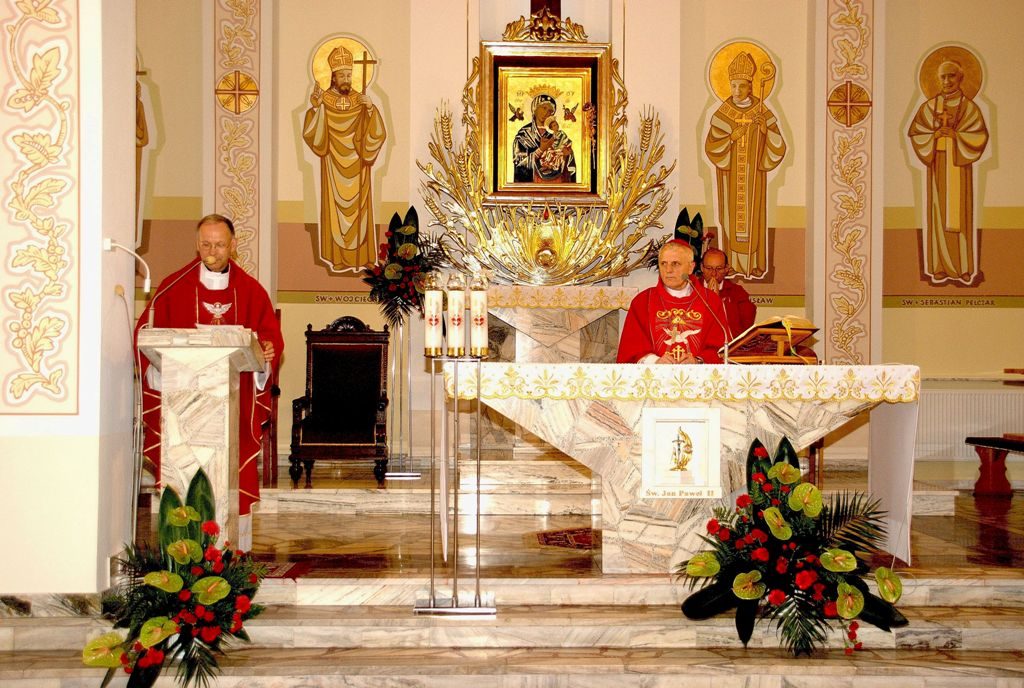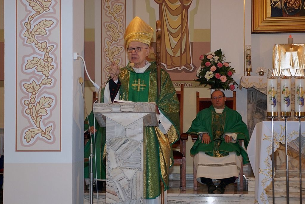 Uroczysta Msza św. pod przewodnictwem ks. Abpa Józefa Michalika – poświęcenie odnowionej polichromii kościoła (06.11.2022 r.). Odnowienie malatury dokonane przez Pana artystę Mariusza Węcławika – Anno Domini 2022: