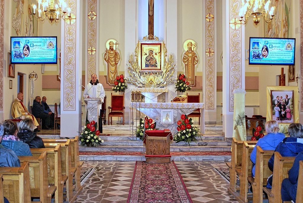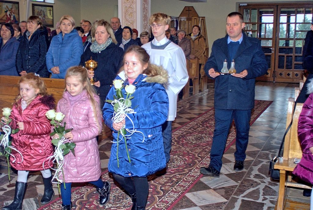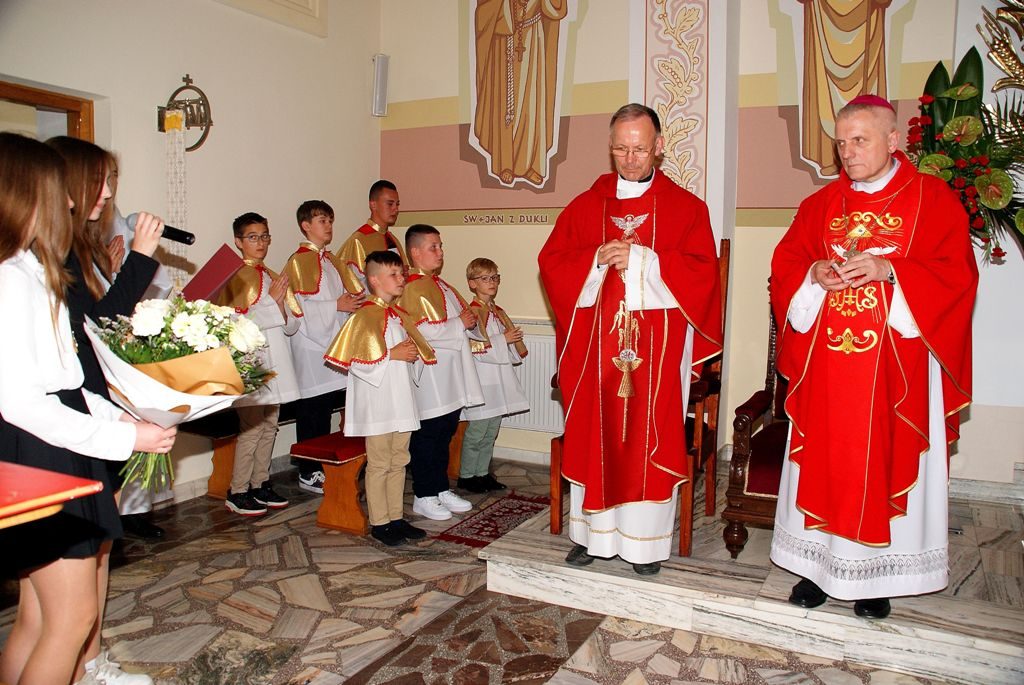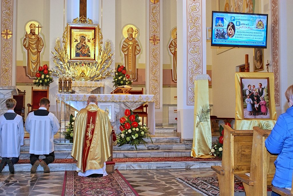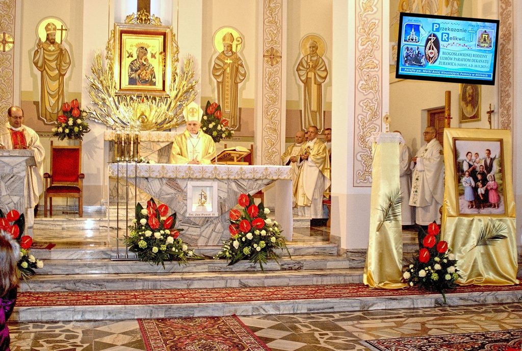 Uroczysta Msza św. pod przewodnictwem ks. Bpa Stanisława Jamrozka – przekazanie relikwii błogosławionej Rodziny Ulmów Parafiom dekanatu Żurawica (18.11.2023 r.) :