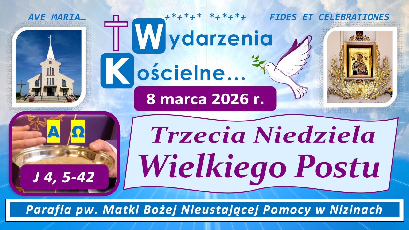 Ogłoszenia duszpasterskie Parafii pw. Matki Bożej Nieustającej Pomocy w Nizinach 08.03.2026